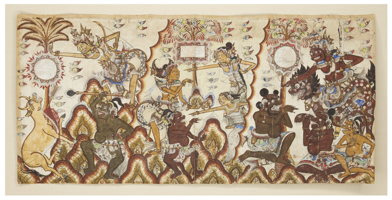 1. The Abduction of Sita, Anak Agung Gambir, Mas, natural pigments on paper, ca. 1910, 96.5 x 54.5 cm