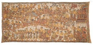 3. Panji Wandering in the Mountains Encounters Princess Rangkesari, probably by Nyoman Dogol, Kamasan, natural pigments on hand-loomed cotton cloth, pre-World War II, probably 1920s, 183 x 84 cm
