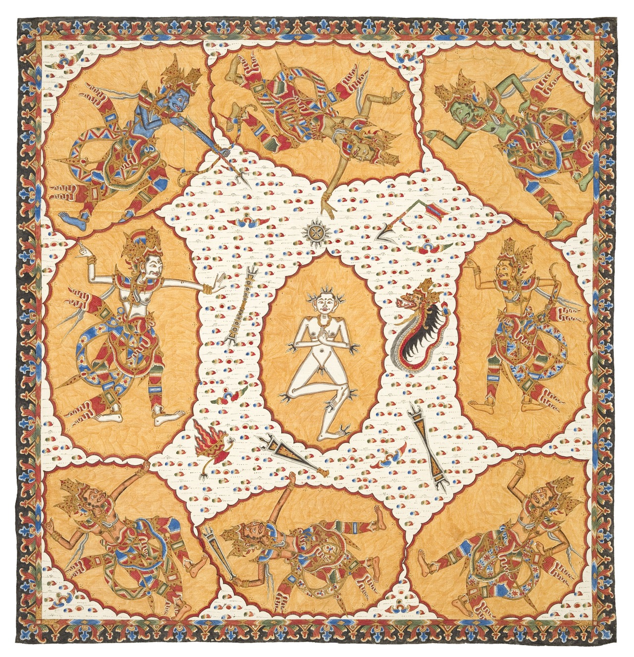 5. Deities of the Directions, Wayan Suweca, Kamasan, natural pigments on cotton cloth, 1973, 126.5 x 132.5 cm