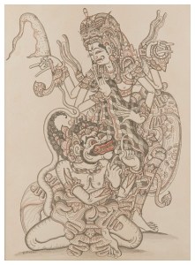 15. Hanoman Receives his Magical Kain Poleng from Siwa, Ketut Madra, Peliatan, ink and acrylic on paper, 1973, 27.5 x 38 cm
