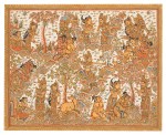 9. Semara and a Deputation of Deities, Anonymous, Kamasan, natural pigments on cotton cloth, Chinese coins attached at top with print cloth below, pre-World War II, 166 x 170 cm
