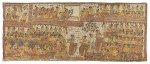 4. Panji at the Court Festivities of Gegelang, probably by Nyoman Dogol, Kamasan, natural pigments on hand-loomed cotton cloth, pre-World War II, probably 1920s, 216 x 87 cm