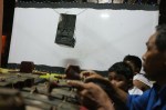 At top left, Agung Muning, curator at the Museum Puri Lukisan where he has worked for the past 59 years, plus a few installation shots of the exhibition “Ketut Madra and 100 Years of Balinese Wayang Painting” at the Musuem Puri Lukisan in Ubud, 7 October to 10 November, 2013. Photos by Anggara Mahendra.