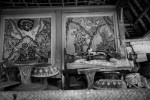 The paintings were retired from temple service in the mid-1990s after 20-plus years and replaced with new ones. The top photo is part of a series shot by Barbara Miller as the family renovated the sanggah in preparation for its odalan.